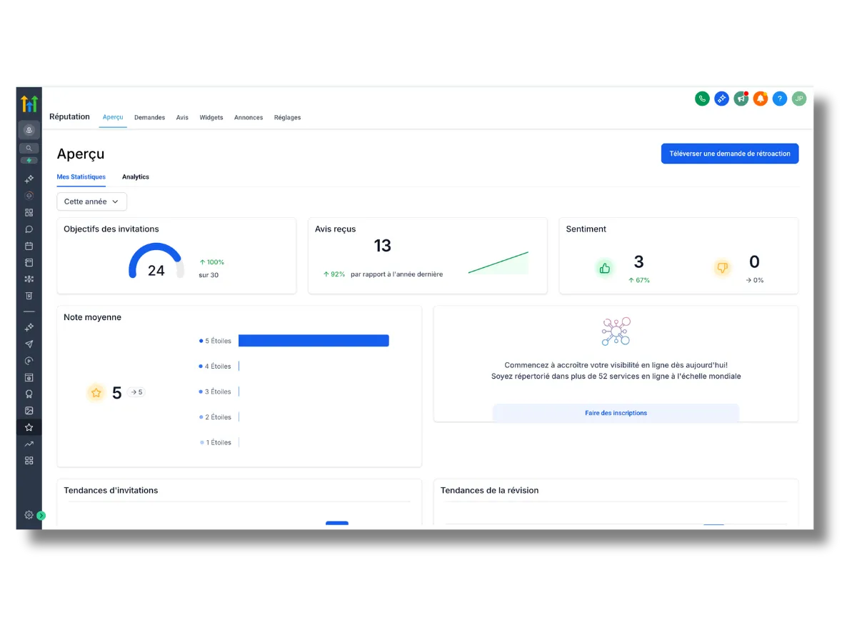 Augmentez vos demandes de soumissions en récoltant davantage de “Review” Google et de référence grâce à des suivis de satisfaction post-projet automatisés.